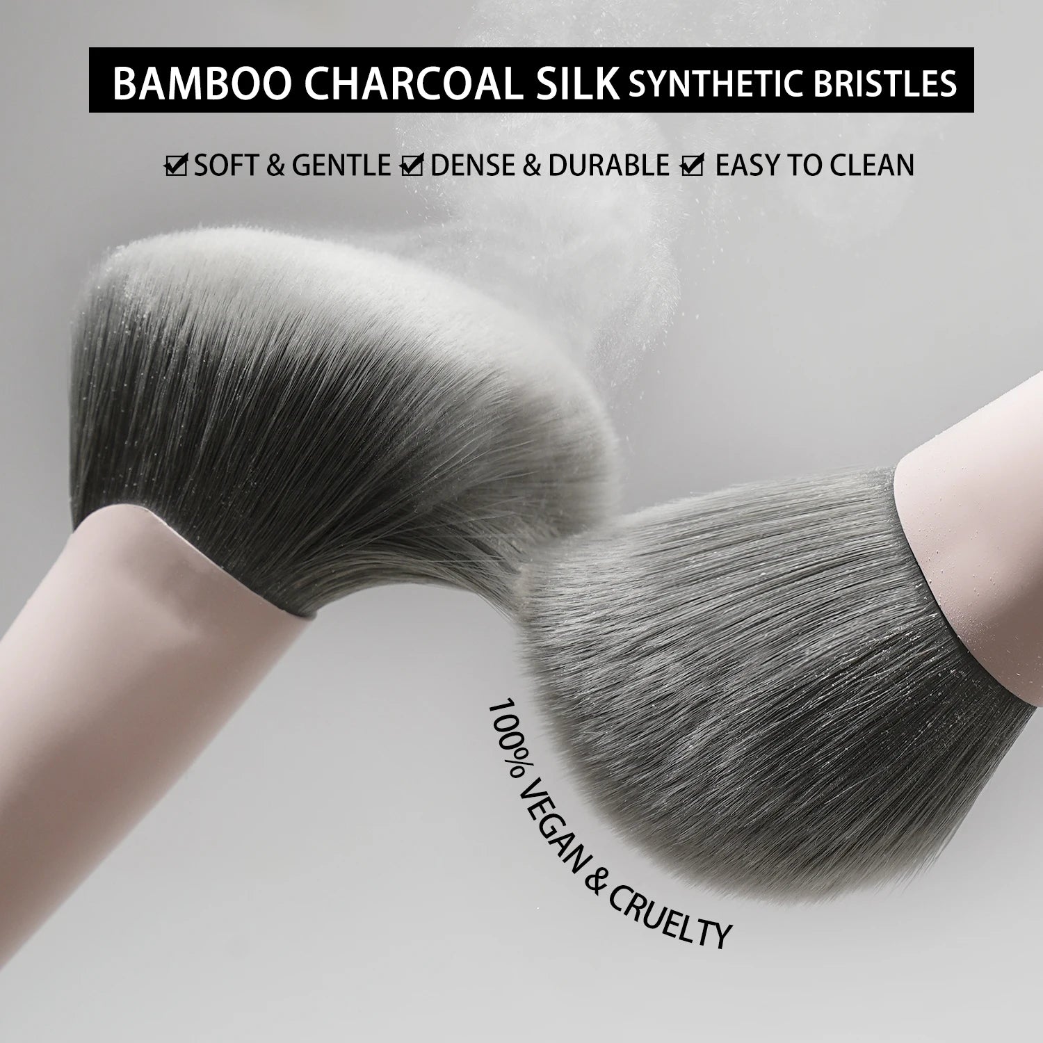 Premium vegan brushes crafted with ultra-soft synthetic fibers for seamless blending and flawless results.